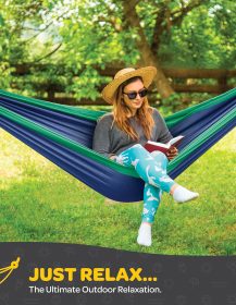 Durable Hammock 400 lb Capacity, Nylon Camping Hammock Chair – Double or Single Sizes w/Tree Straps and Attached Carry Bag – Portable for Travel/Backpacking/Beach/Backyard (Medium, Blue & Light Blue)